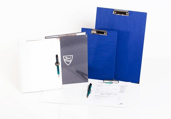 Clipboards, Klemmbretter und Klemmbrettmappen werden aus unempfindlichem PP (Polypropylen) hergestellt und sind mit oder ohne Deckel lieferbar - auf Wunsch mit Aufdruck. Ihre Blöcke oder Blätter werden auf der stabilen Schreibunterlage der Clipboards/Klemmbretter durch die Klemme gehalten, mit Aufhänge-Lochung und einer besonderen Schreibgerätehalterung, so dass der Stift nicht übersteht.